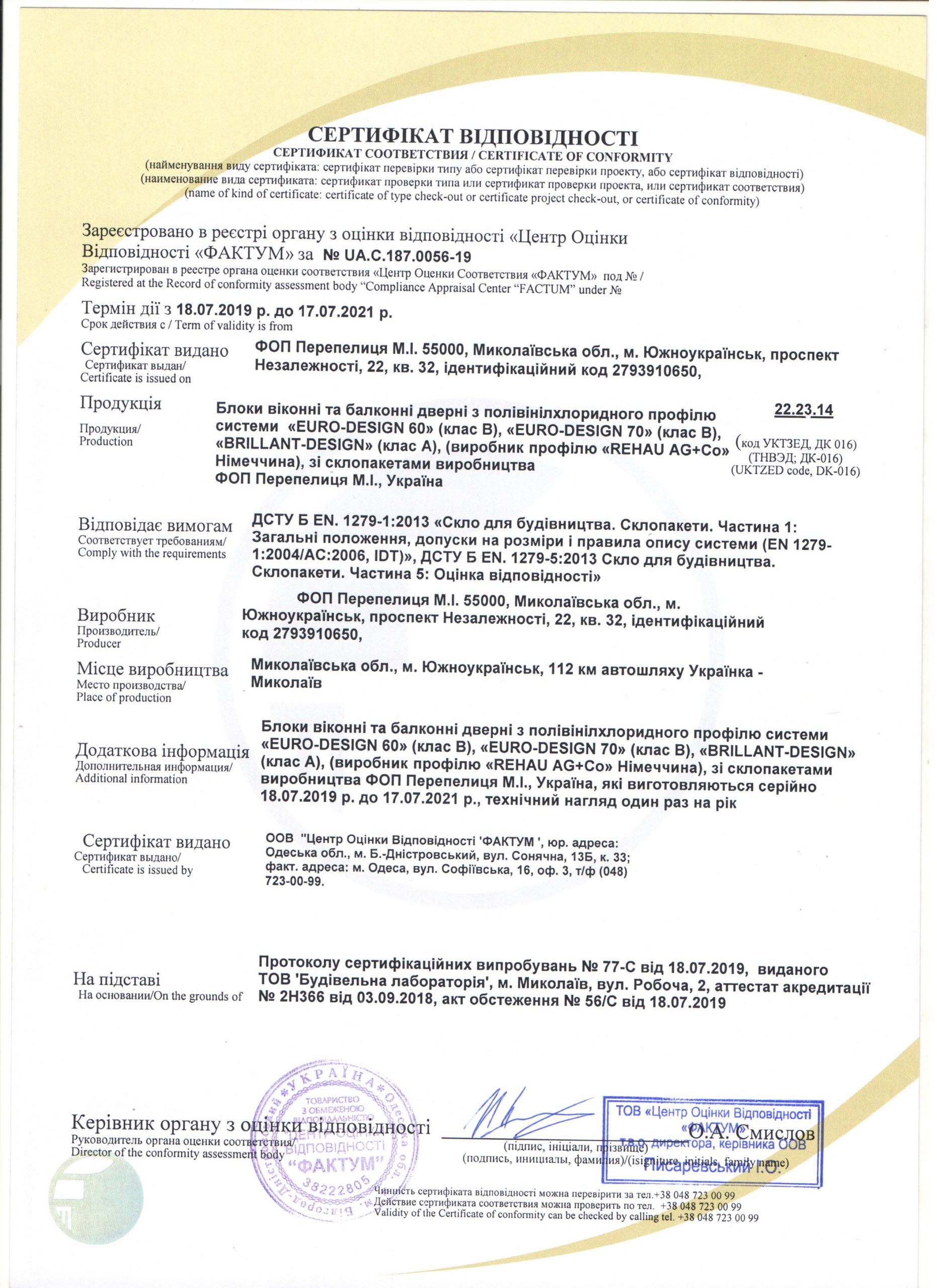 OKNA SYSTEM products are also certified by